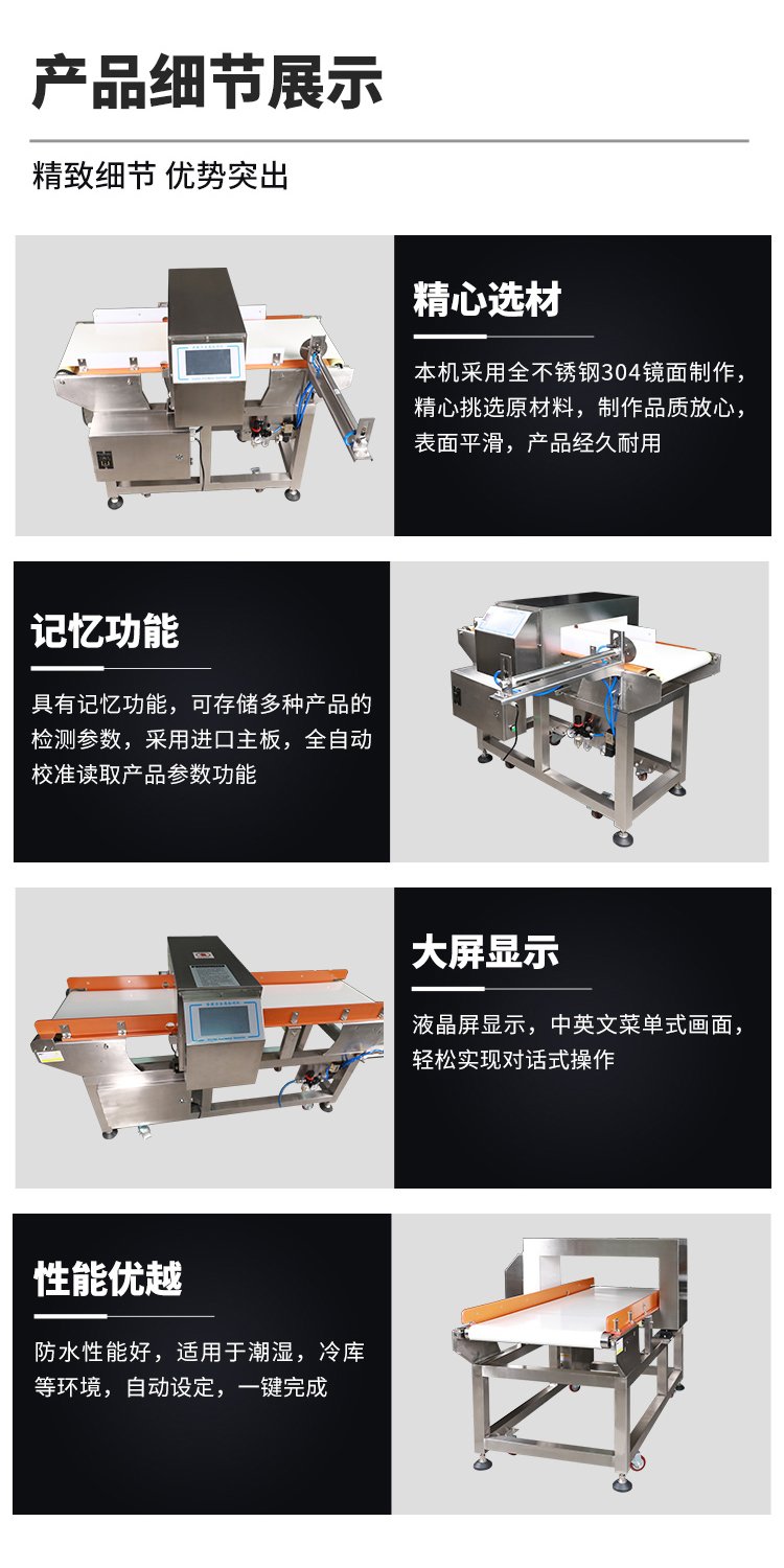 输送带式验针机的工作原理是:当铁磁性物体进入检测通道时,上下探头通过强磁场感应产生信号并把信号发送到信号接收处理集成块,然后有光电仪扫描感应、强电集成块、灵敏度控制集成块、信号接收集成块和信号输出集成块和执行元件来完成检测工作。