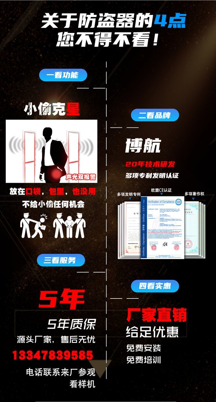 7、博航承诺为您快速便捷的安装服务,专注于安装超市防盗、服装防盗、图书馆防盗、手机电子防盗等设备。