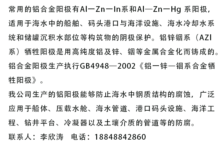 用途范围 | 海水船舶储罐海底管道等阴极保护防腐 | ||
