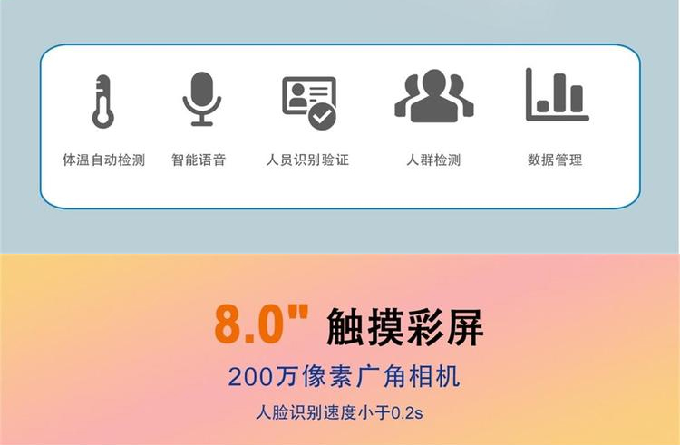 识别验证方式 | 动态人脸 测温 密码 刷卡 | ||