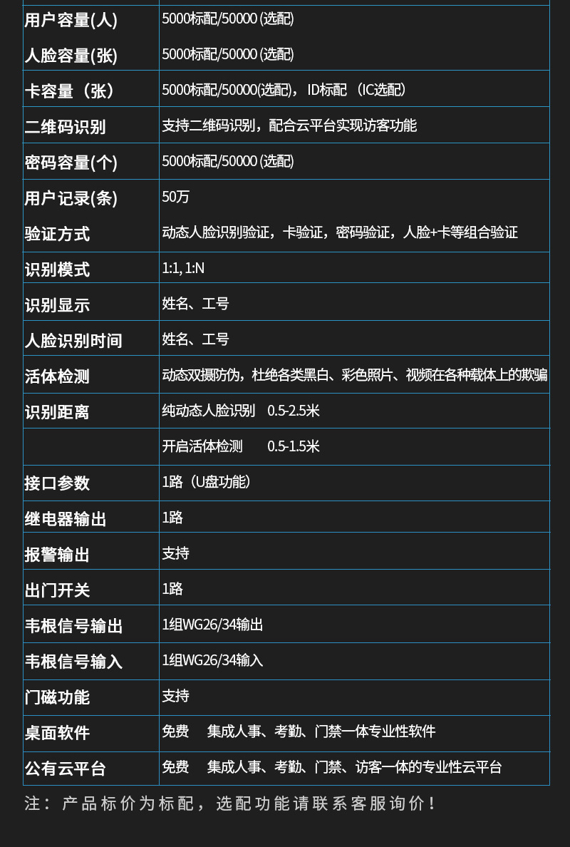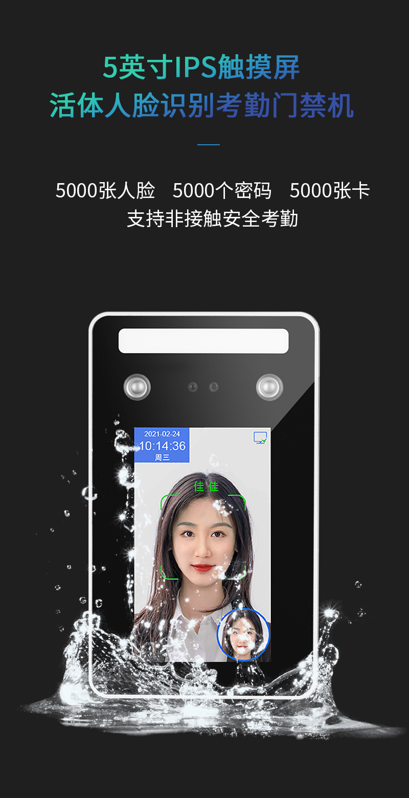 存储量 | 人脸5000 密码IC卡各5000 50万条记录 | ||