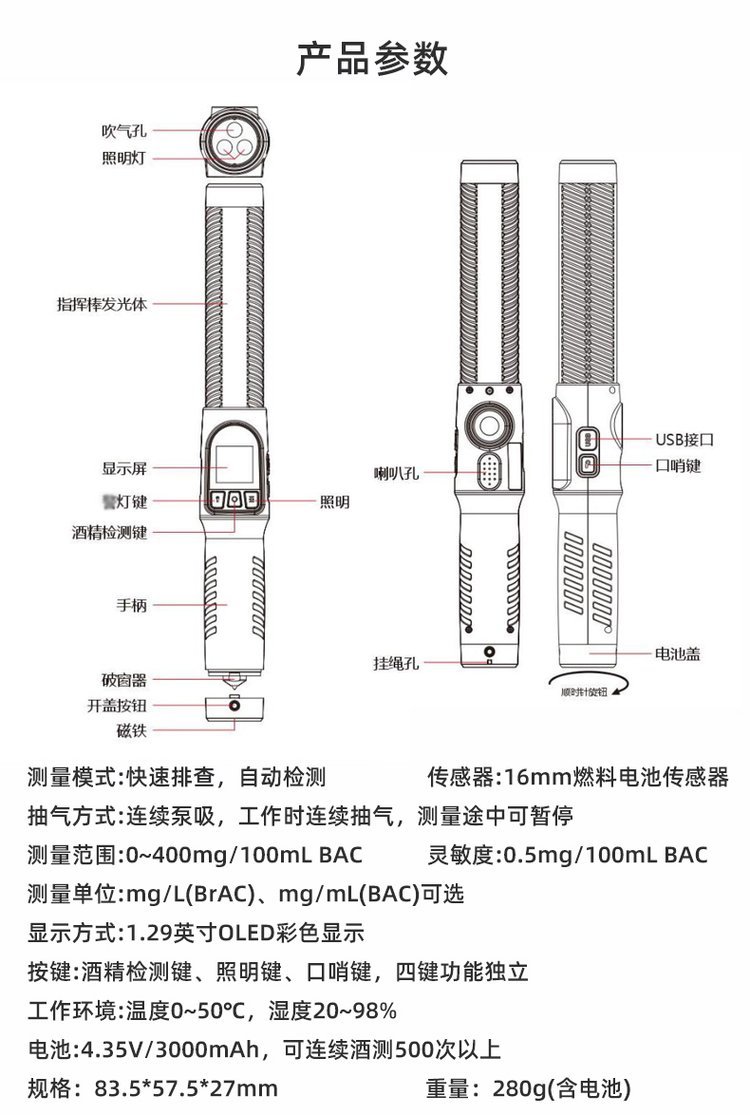 测量精度 | 1mg/100ml BAC | ||