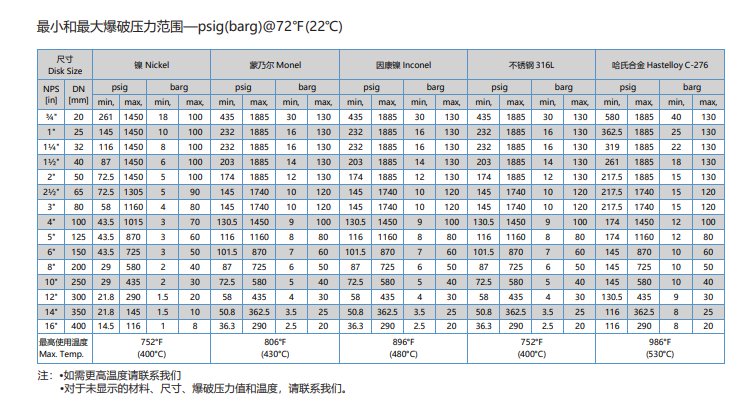 爆破片:在一定压力和温度下破裂泄压的 元件。