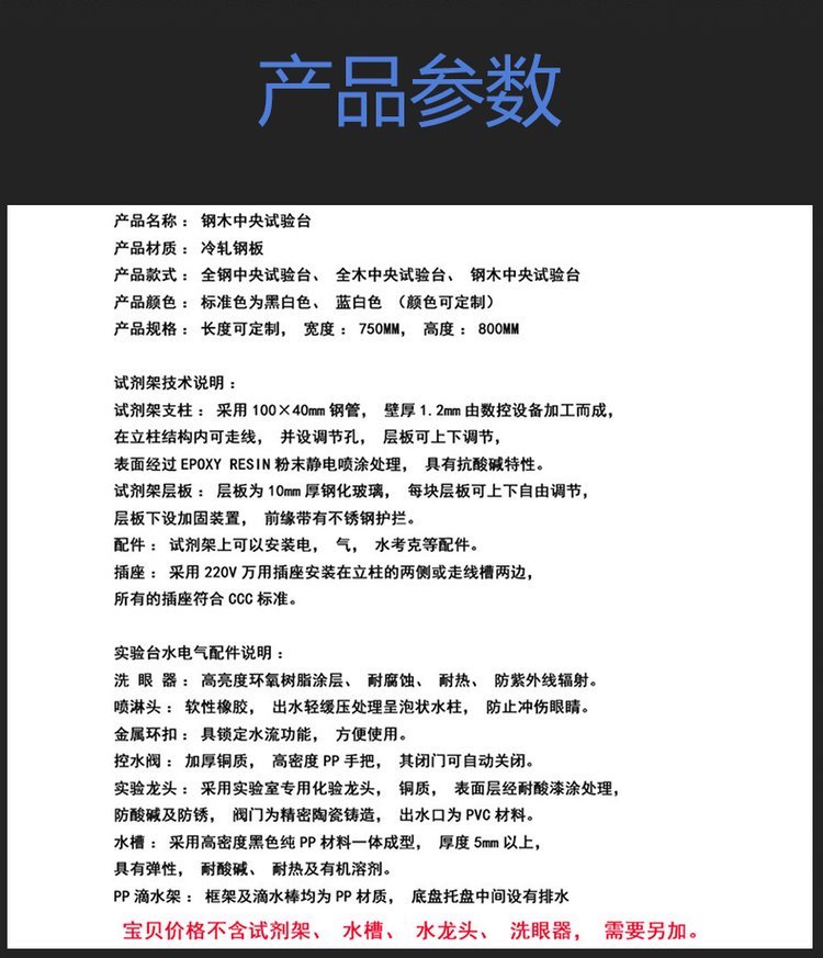 台面 | 环氧树脂实芯理化板陶瓷板大理石板、千思板、不锈钢板等 | ||