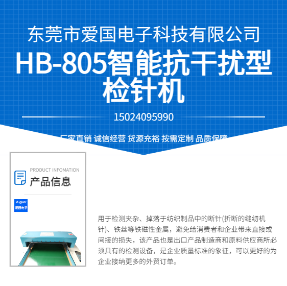 用途 | 用于检测夹杂、掉落于纺织制品中的断针(折断的缝纫机针)、铁丝等铁磁性金属 | ||