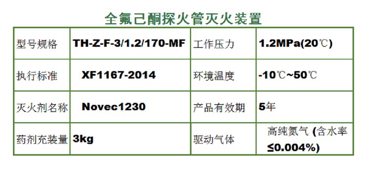 灭火剂名称 | Novec1230 | ||