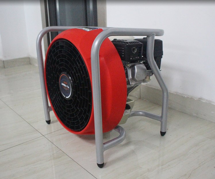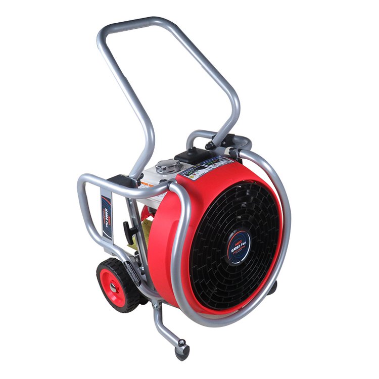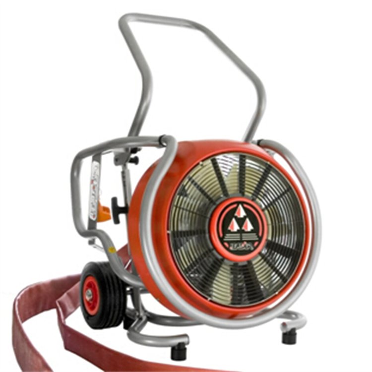 水驱动铝制马达、功率9HP(6.7KW)、排烟量41534立方米/小时;强劲风力技术、超强风压,在距离入口2-6米处排烟效果等同;风扇直径40CM、加固型合成树脂叶片;金属防护架环绕整个机器,即坚固耐用、又可对排烟机任何方向的倒落起到完全防护;最大水压及水流量10BAR@620升/分钟;产品尺寸:55X55X49CM;产品重量:36KG; 配有脚轮、可方便移动;拉起扶手后、可自动调节排烟机的倾斜度以达到最理想角度;CE认证