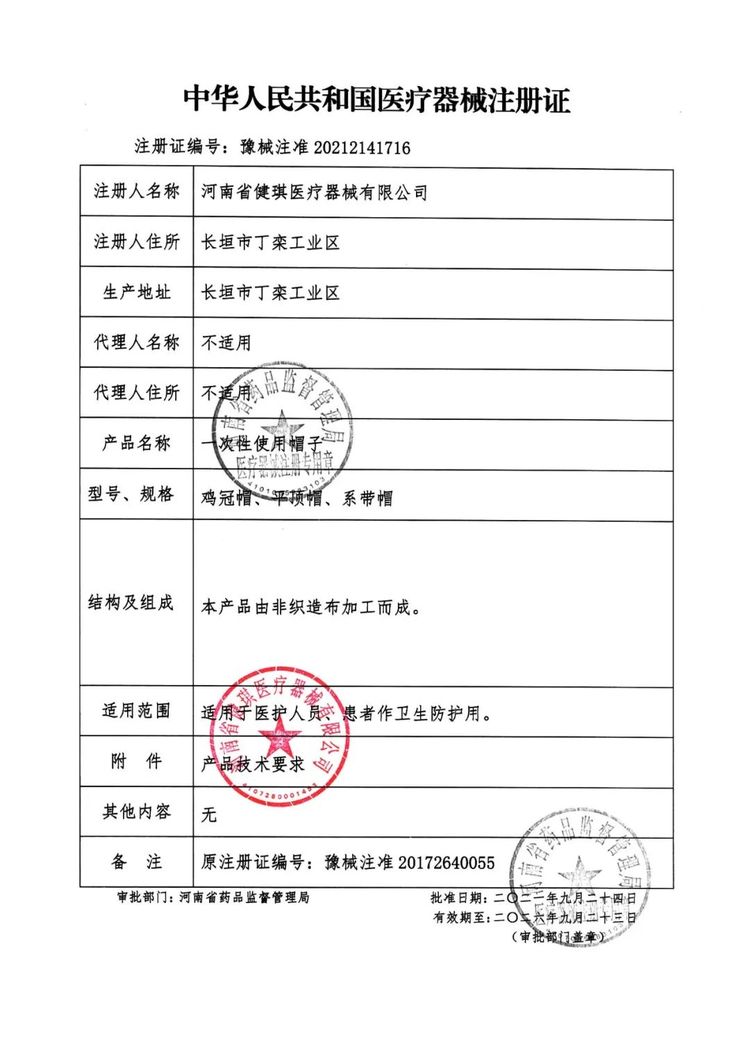 生产许可证 | 豫食药监械生产许20080036号 | ||
