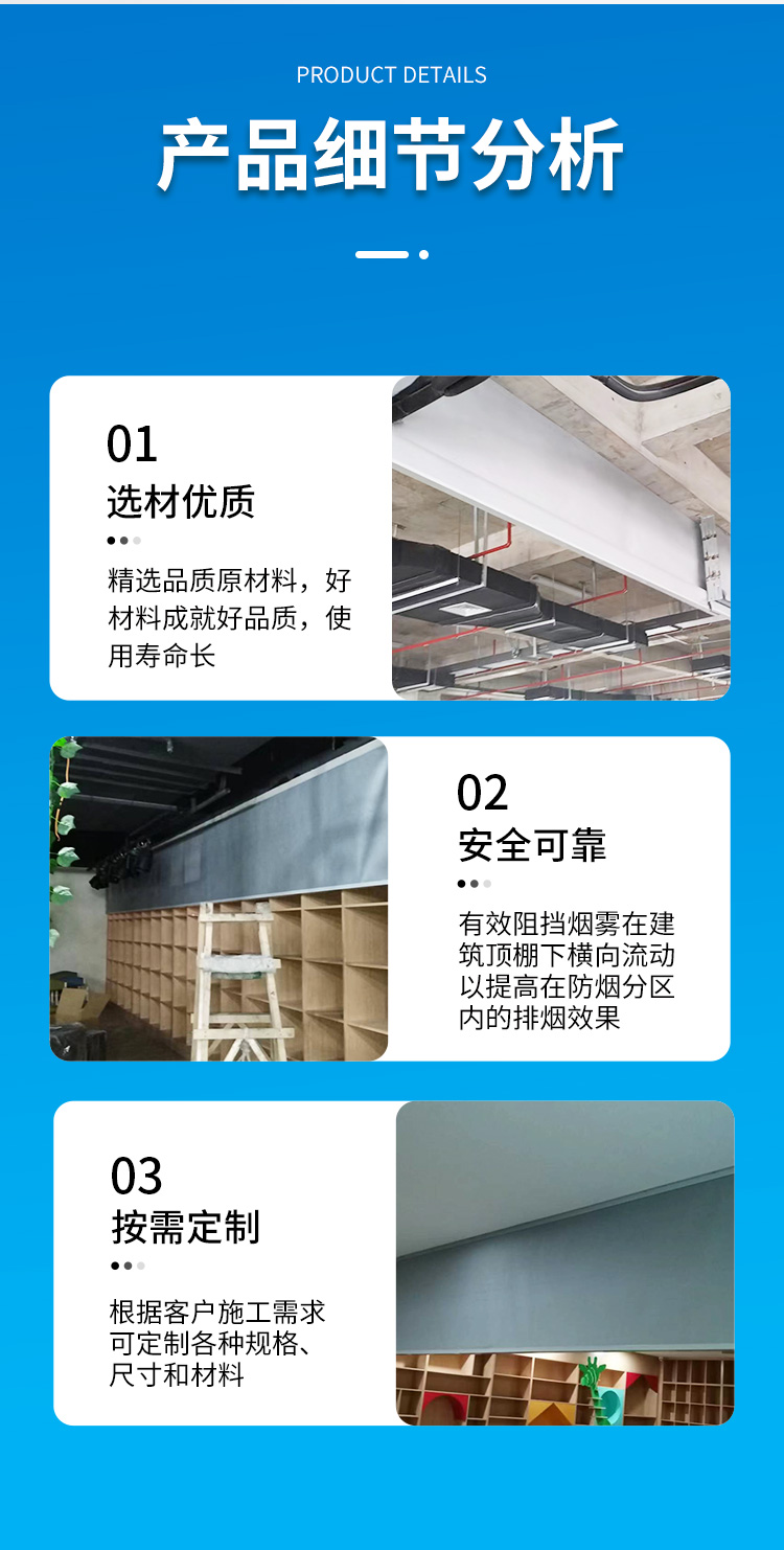 鸿邦固定式柔性挡烟垂壁广泛用于工厂车间地库等区域按需定制