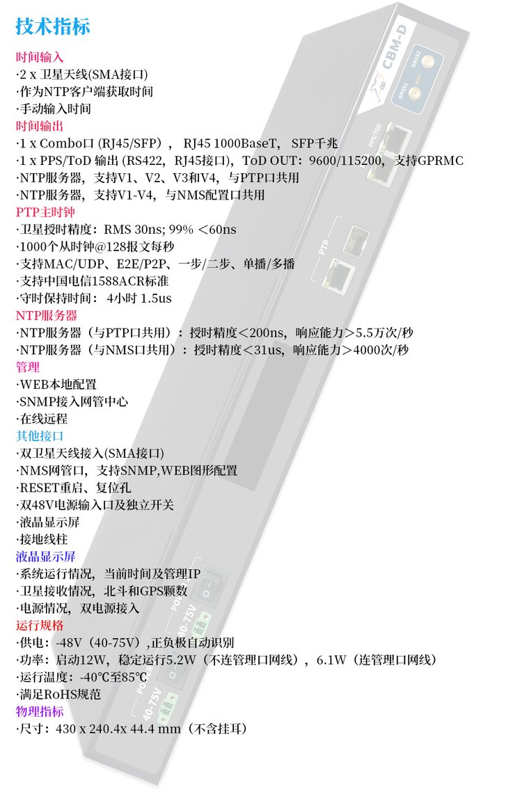 卫星授时精度 | RMS 30ns;90<60ns | ||