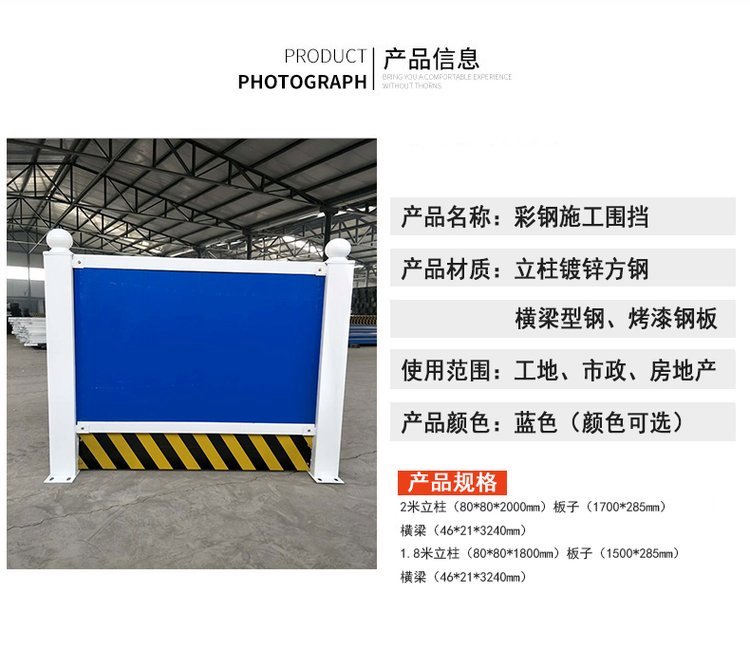 B1施工围挡PVC塑料扣板铁皮隔离围墙市政工地围栏批发厂家汉疆