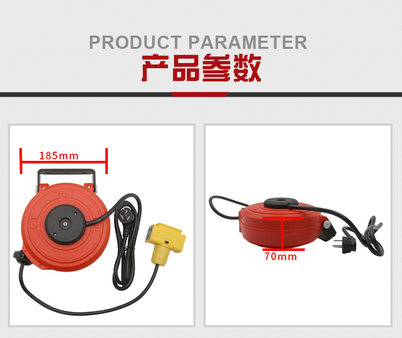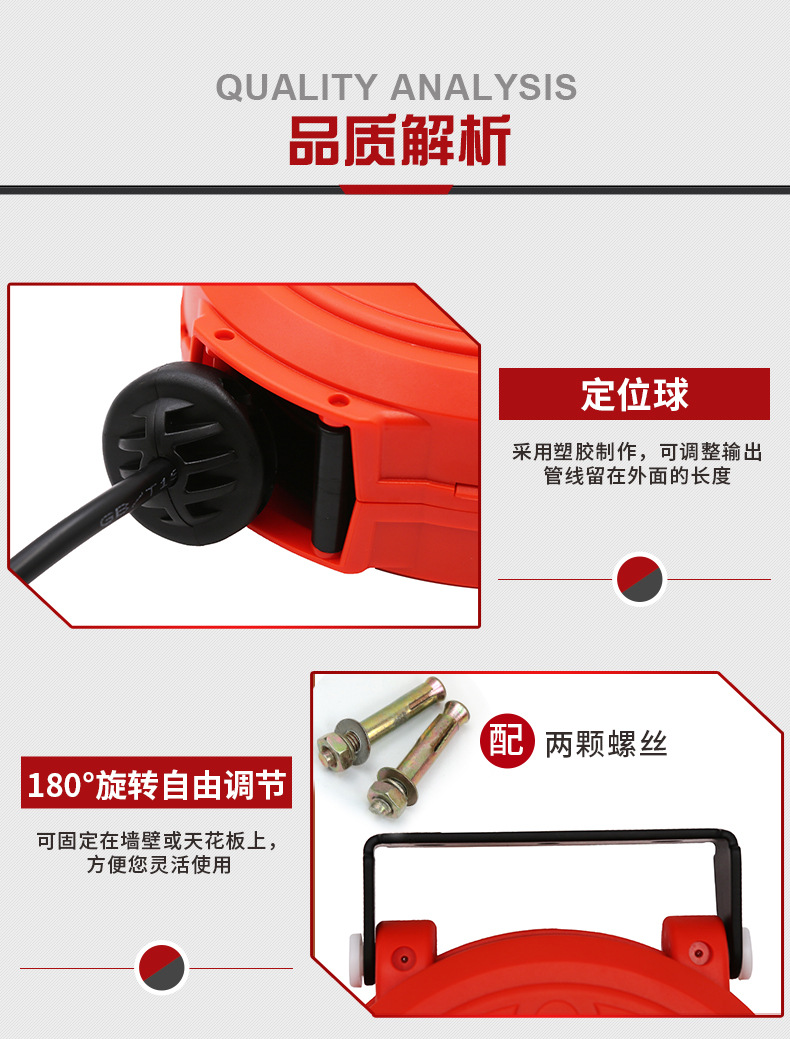 思镒T9小号伸缩卷管器3芯铜质电缆自动绕线器5米迷你自助收缩电鼓