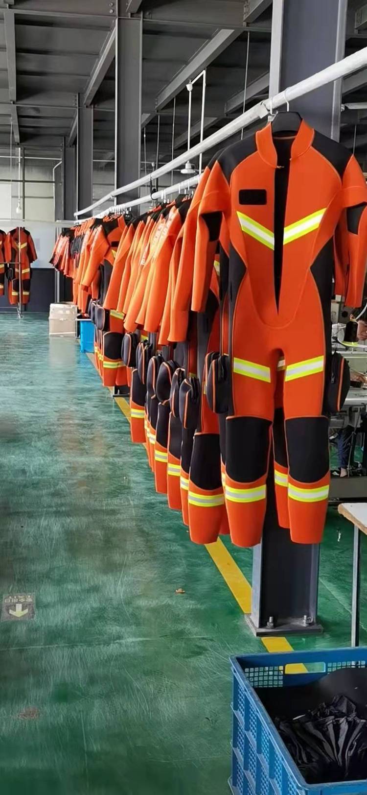 1.2 材质: 高弹性钛涂层氯丁橡胶复合面料,橘红色,厚度为 3.0mm; 外层尼龙弹性针织面料防泼水处理。