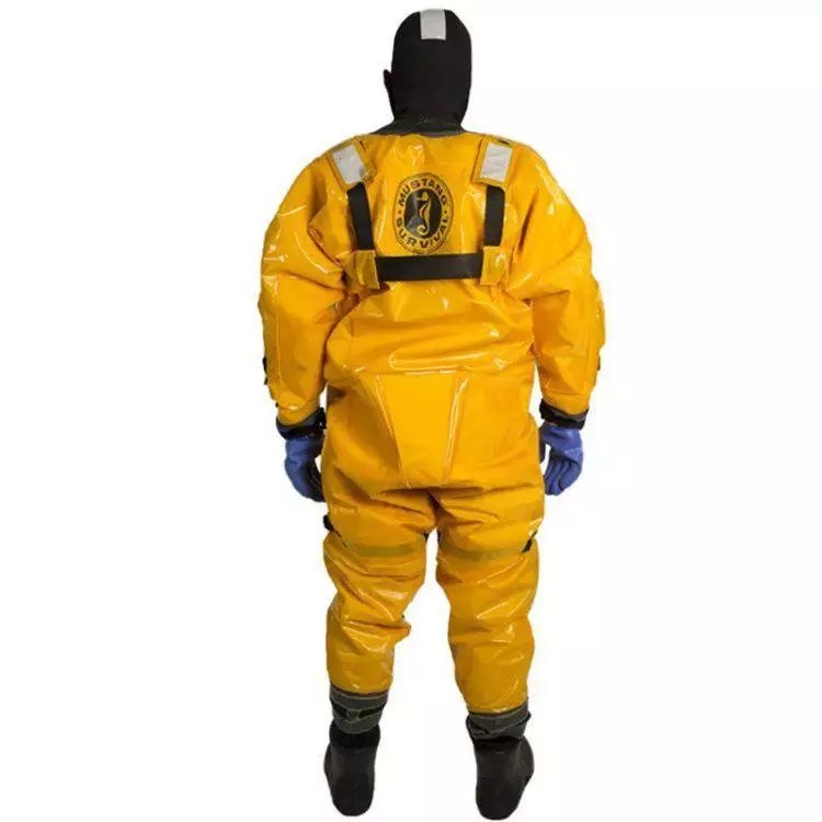 3、采用胶牙气密性拉链,-55℃耐低温、上止开尾,便于穿着,为了 救生安全,下止到拉链中间完全气密功能,防水、保温利于冰面救援。
