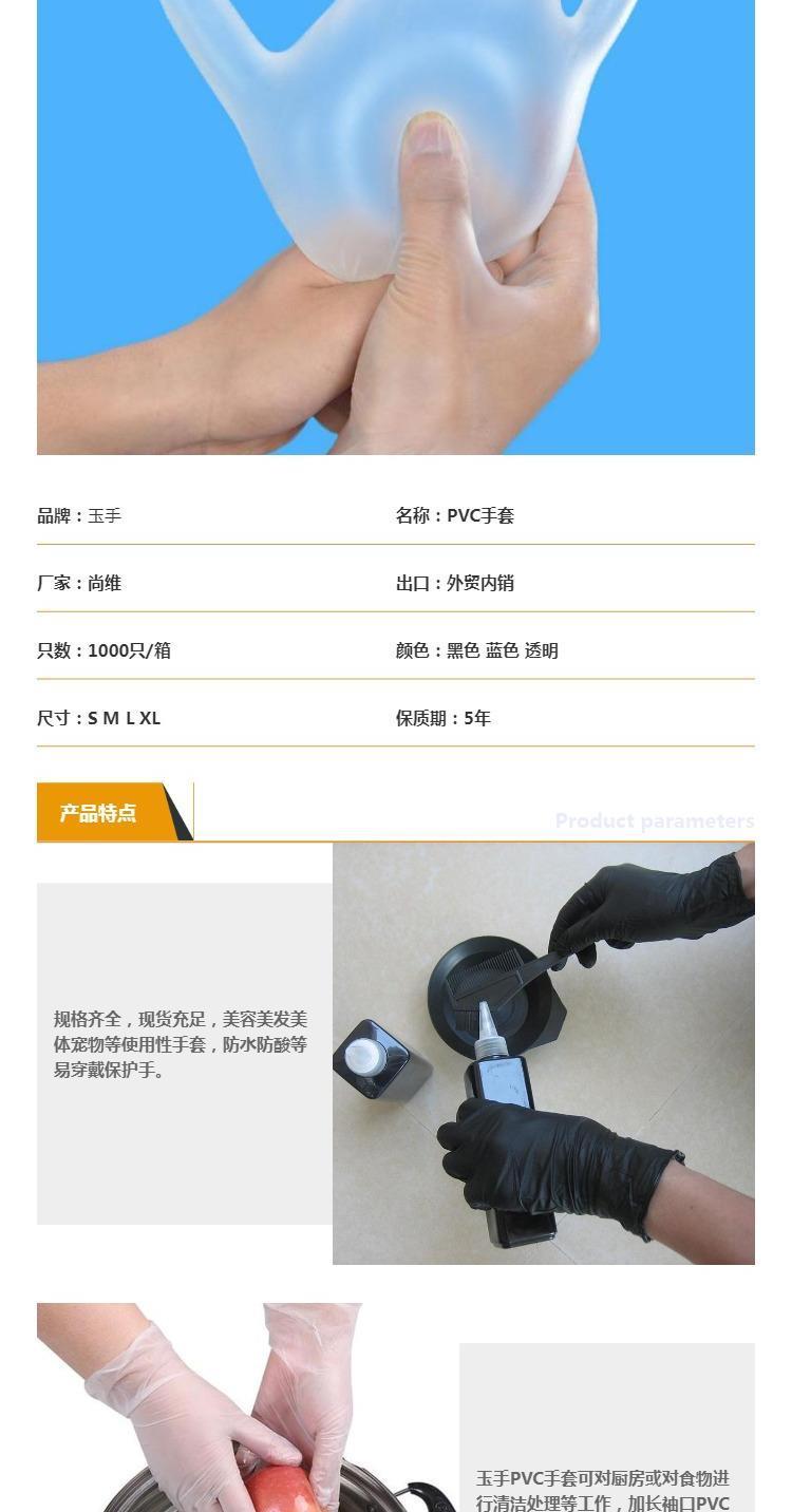 PVC手套批发民用食品级玉手手套品牌支持定制内销出口