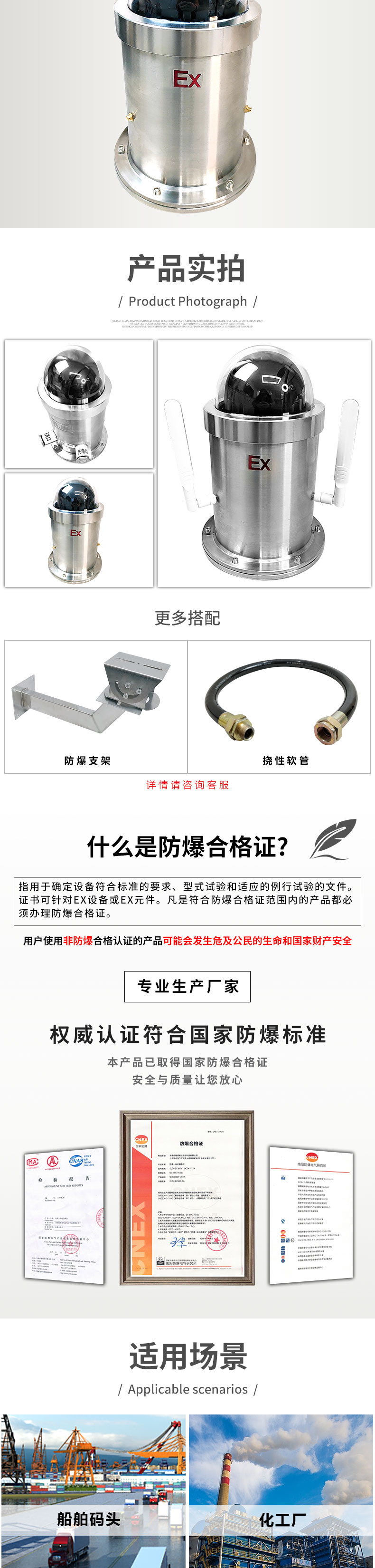 用途 | 适用于油田、化工、仓储、港口等具有爆炸性气体的环境. | ||