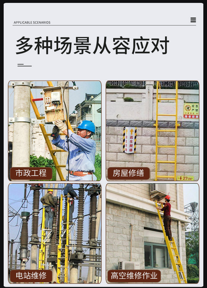 批发玻璃钢绝缘梯电工检修绝缘直梯人字梯多规格电力便携施工梯子