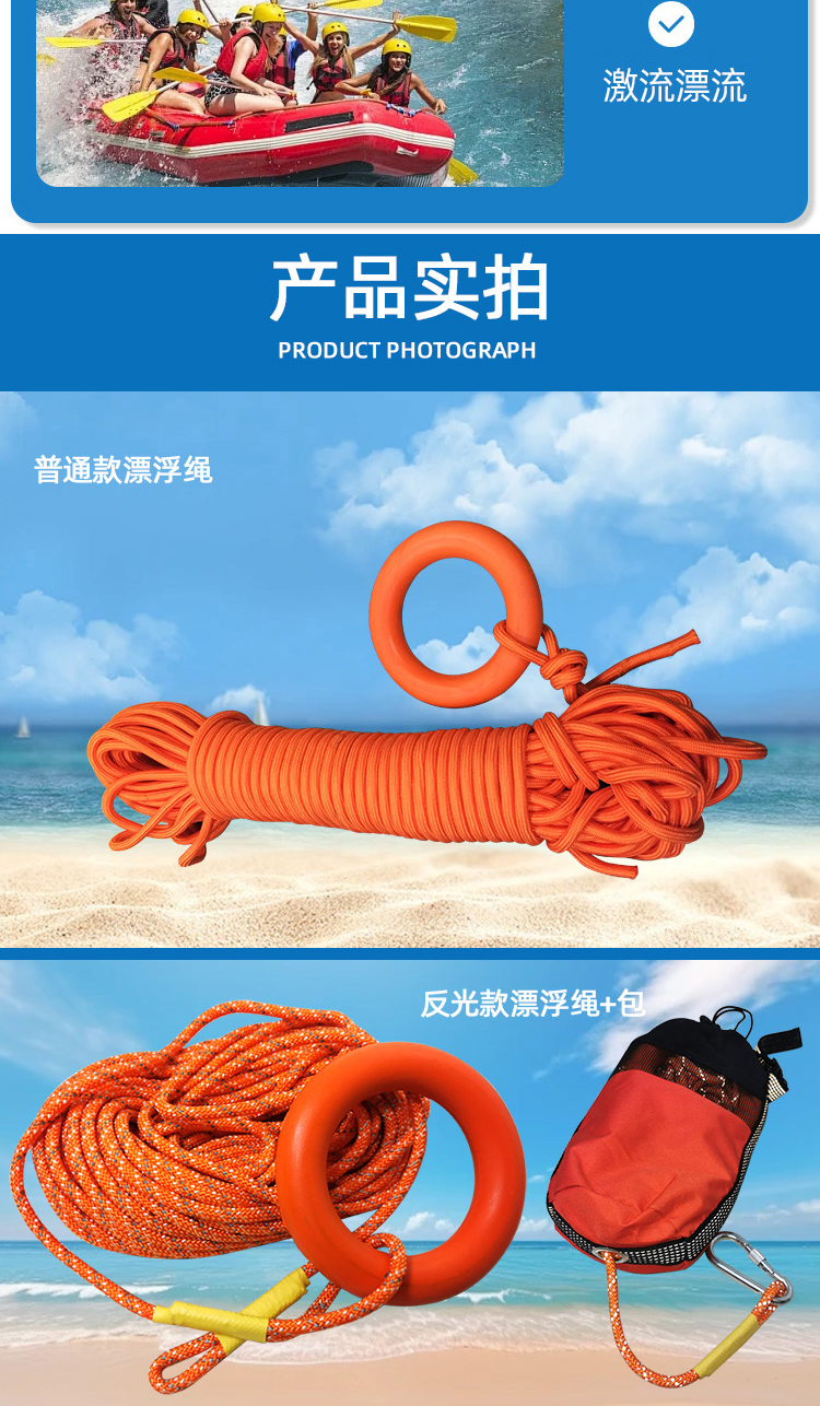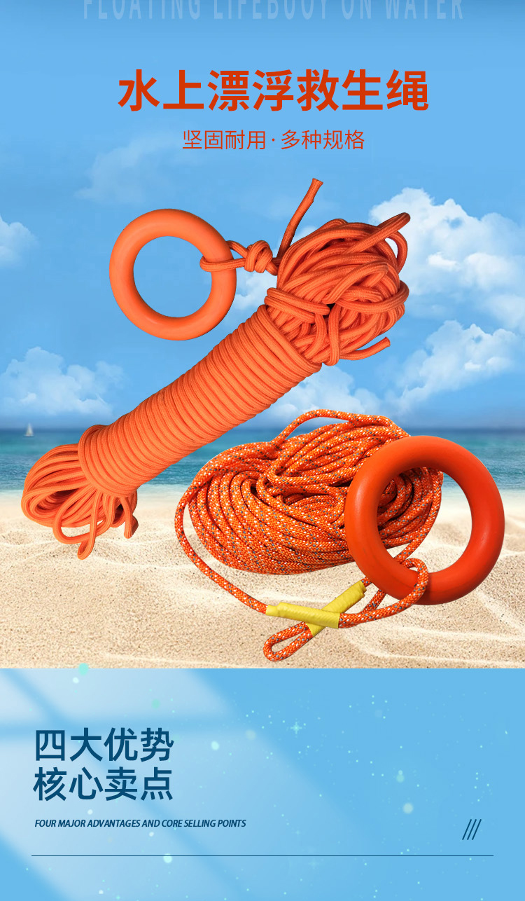 水域反光夜光救生船用救生圈漂浮绳水面逃生救援绳