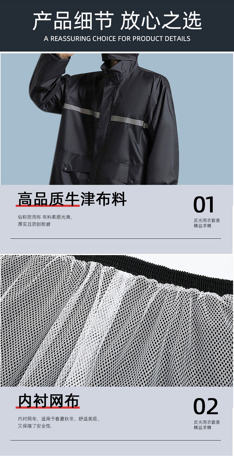 加厚牛津布成人户外反光分体式雨衣劳保防汛应急雨裤套装批发