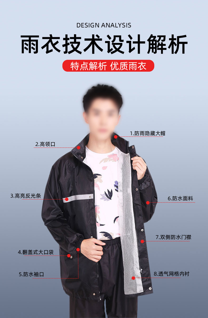 • 规格:分体雨衣