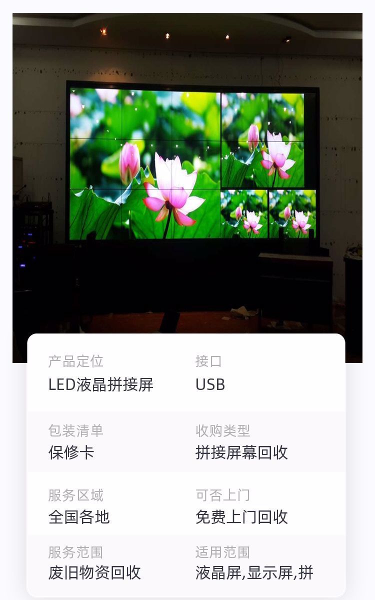 收购类型 | 拼接屏幕回收 | ||