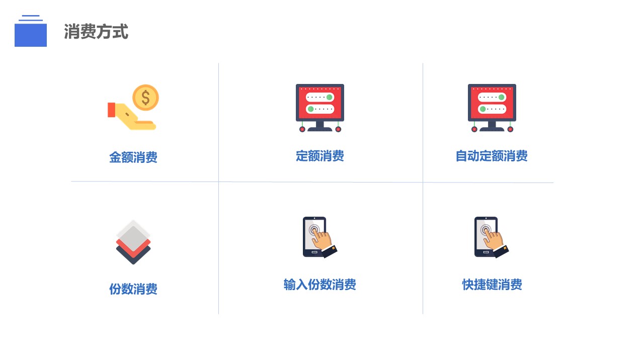 消费方式 | 定额消费/定值消费/补贴消费 | ||