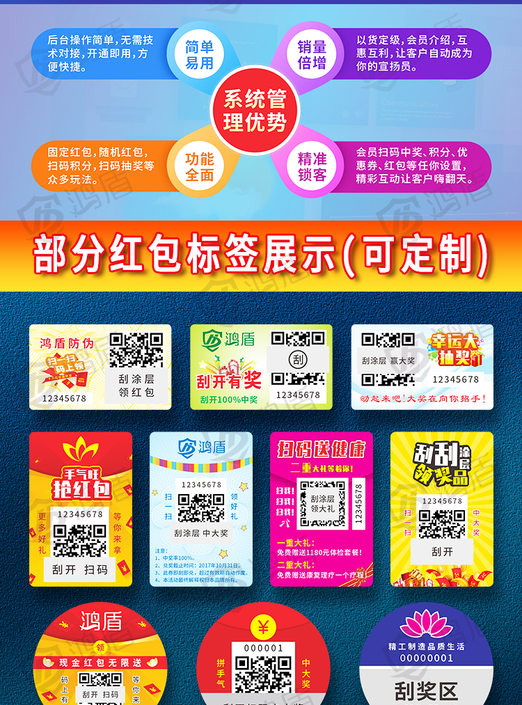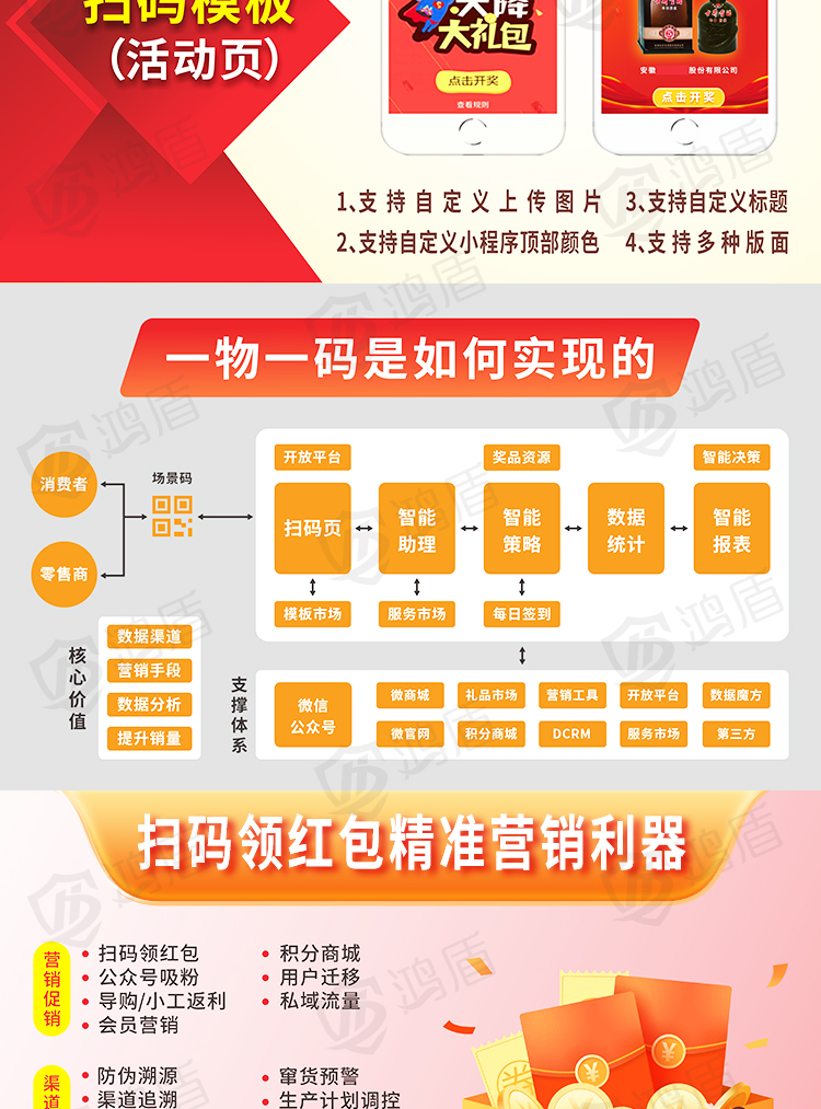 功能防伪,溯源,红包营销,防窜货追溯,电子质保,其他定制功能