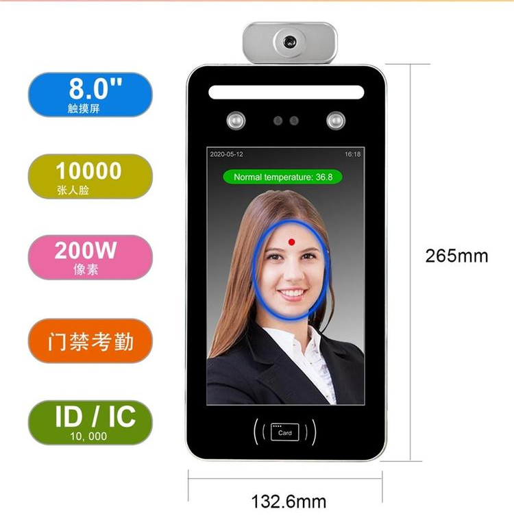 识别验证方式 | 动态人脸 测温 密码 刷卡 | ||