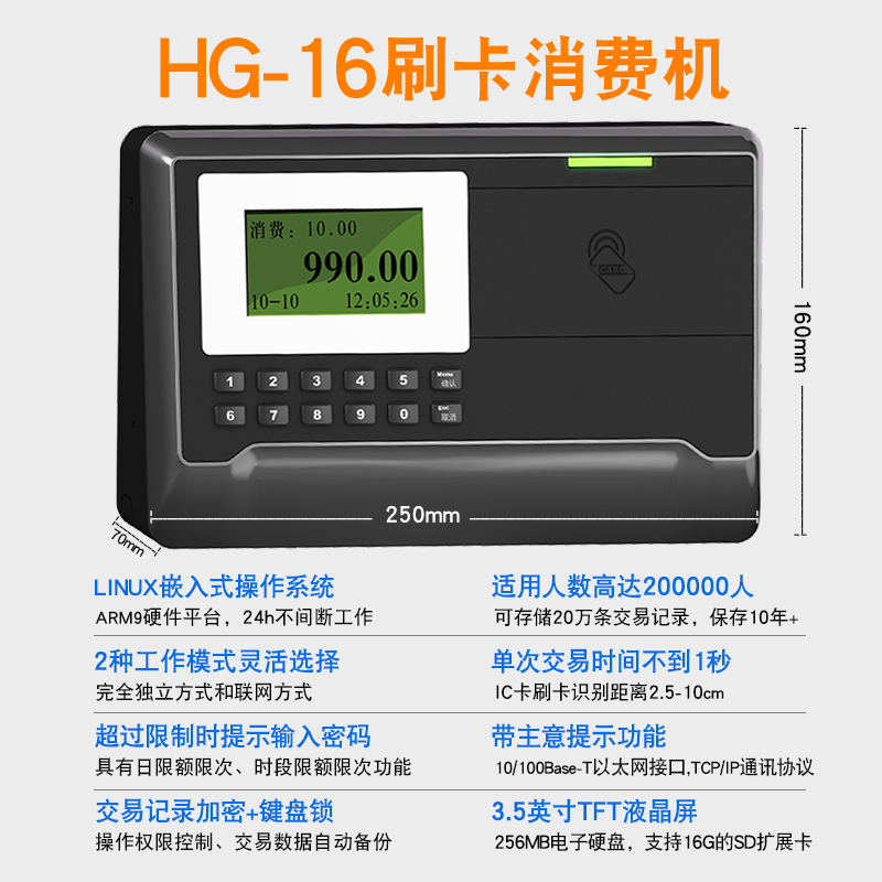 一卡通刷卡消费机壁挂式定额定次消费防油污防尘坚固外壳脱机联网