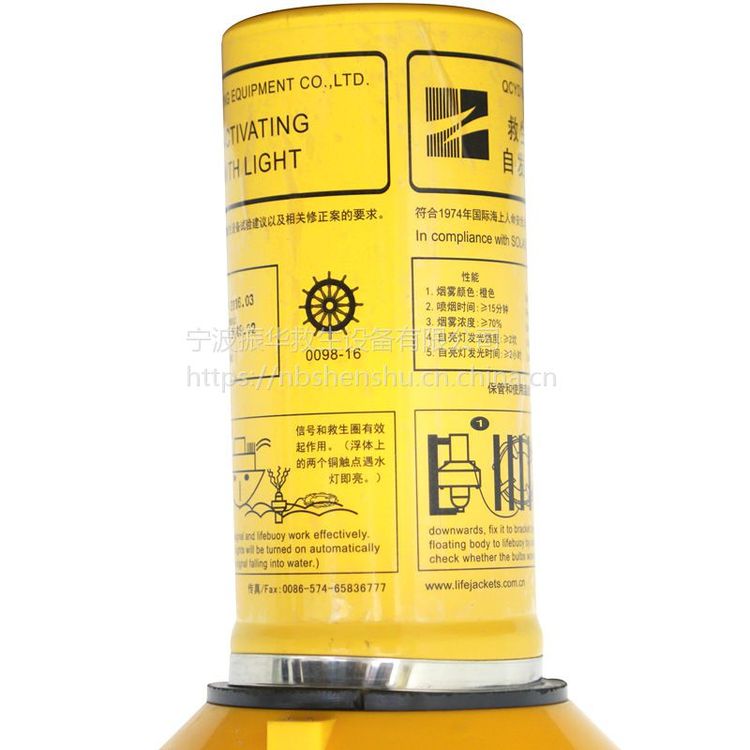 本产品符合国际标准1974年国际海上人命安全公约(SOLAS 74)、MSC.48(66)国际救生设备规则(LSA规则)、MSC.81(70)经修正的救生设备试验建议以及相关修正案的要求。适用于白天和晚上在海上指示救生圈位置的烟火。通过德国劳氏船级社CE认证,通过中国船级社(CCS)认可。