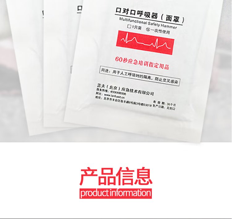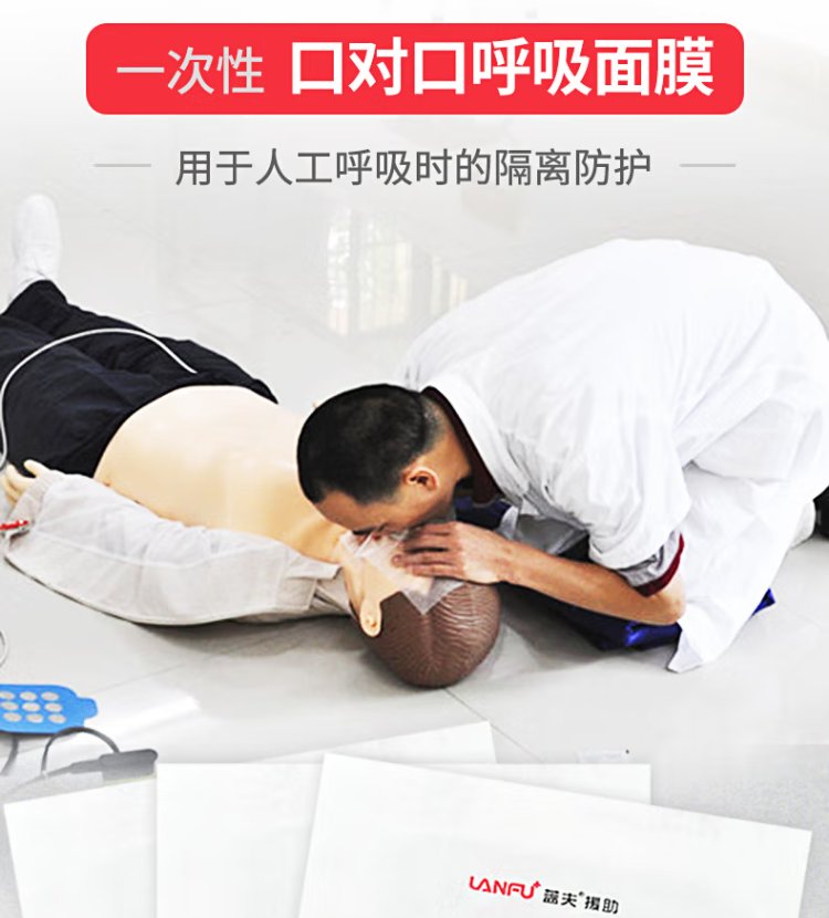蓝夫 口对口呼吸面膜/罩 一次性人工呼吸器 CPR训练屏蔽膜 演练 急救 品牌 | 篮夫 | ||