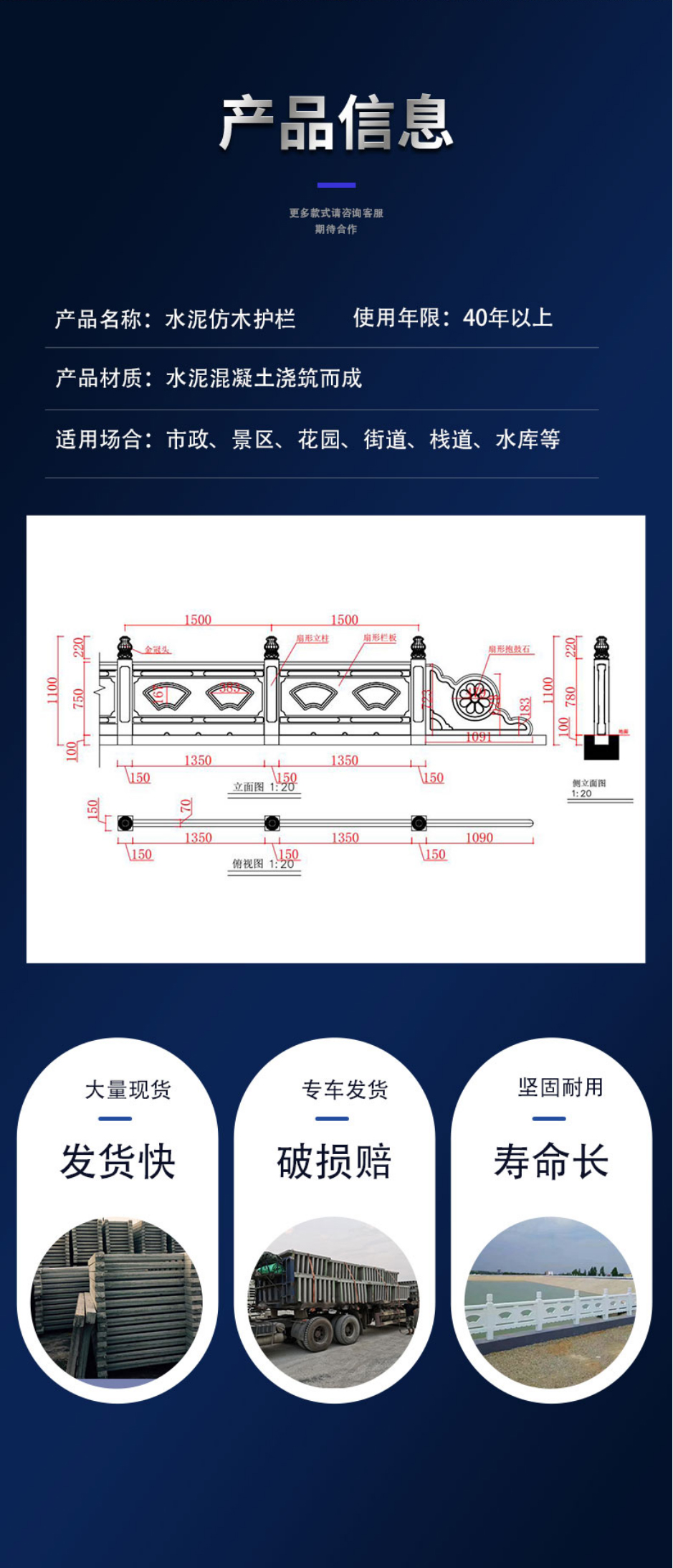 山东枣庄水泥仿木护栏仿大理石护栏河道防护栏杆仿汉白玉栏杆厂家