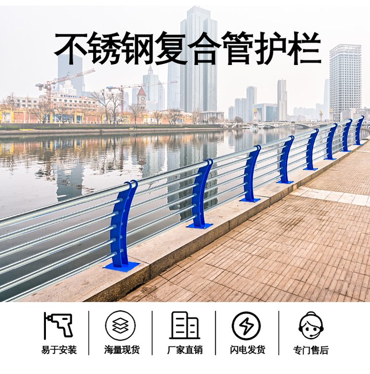 安徽芜湖不锈钢桥梁护栏复合管栏杆高速公路护栏防撞栏支架河道防护隔离栏厂家直销