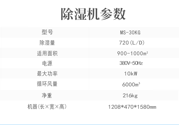 湿美工业除湿机适用:800-1000㎡大功率仓库抽湿机除湿器MS-30KG