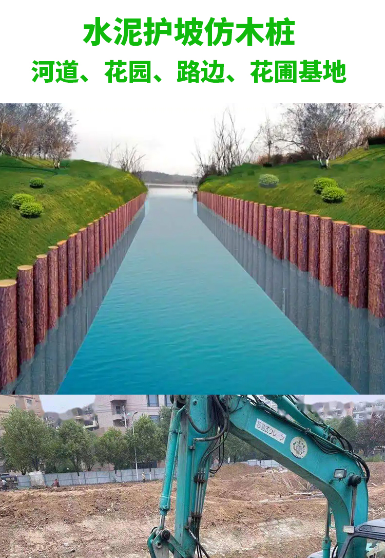水泥铁链护栏仿木仿树皮穿绳钢筋立柱河道景区树桩树藤池塘栏杆