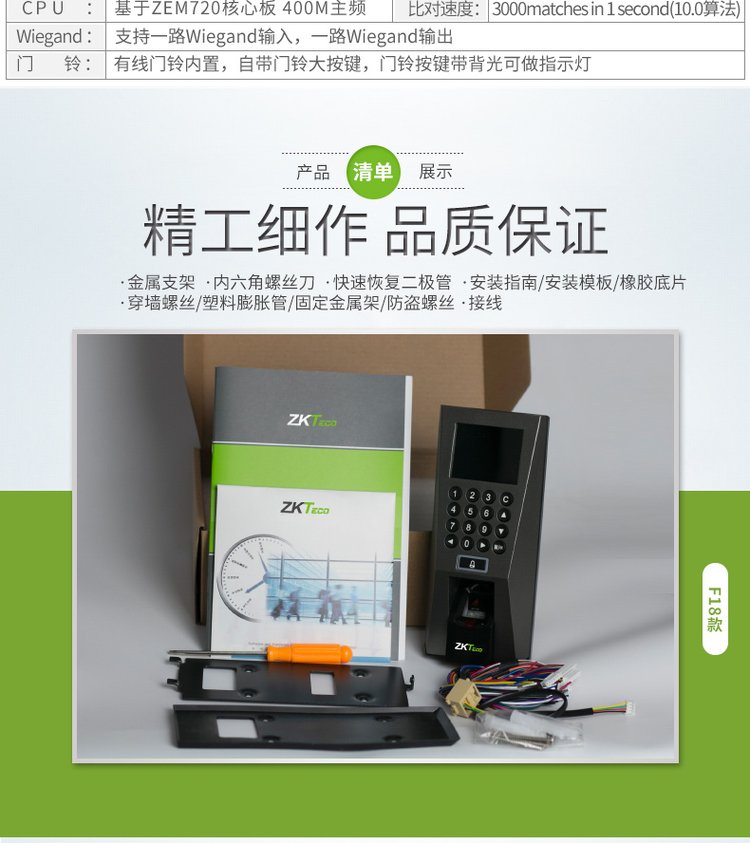 中控智慧熵基科技F18指纹密码ID/IC卡管理智能门禁考勤一体机套装 品牌 | 中控 | ||