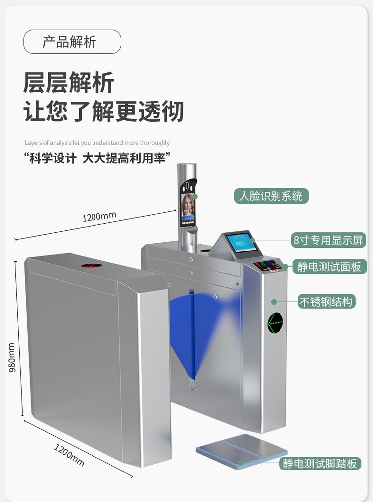 型号 | 南京防静电三辊闸摆闸翼闸人脸识别通道闸 |