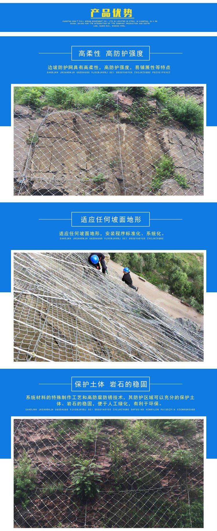 具有高柔性,高防护强度,易铺展性。适应任何坡面地形,安装程序标准化、系统化。