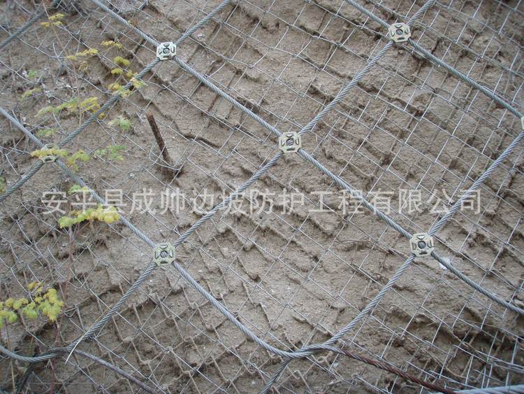 作用原理上类似于喷锚和土钉墙等面层护坡体系,但因其柔性特征能使系统将局部集中荷载向四周均材质:钢丝绳网、普通钢丝格栅(常称铁丝格栅)和TECCO高强度钢丝格栅 匀传递以充分发挥整个系统的防护能力,即局部受载,整体作用,从而使系统能承受较大的荷载并降低单根锚杆的锚固力要求 。