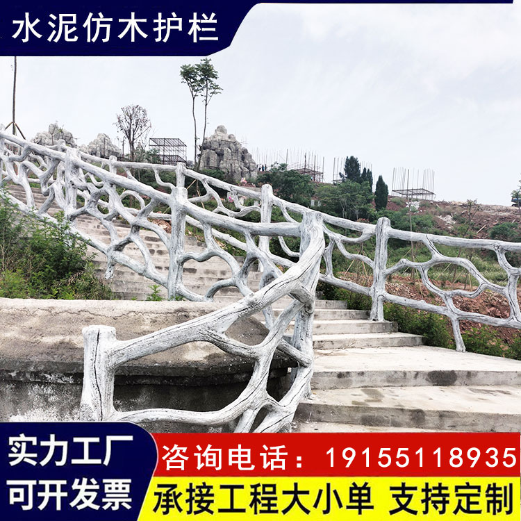 水泥仿木护栏手工艺术生态围栏防树藤混凝土栏杆河道景区栅栏