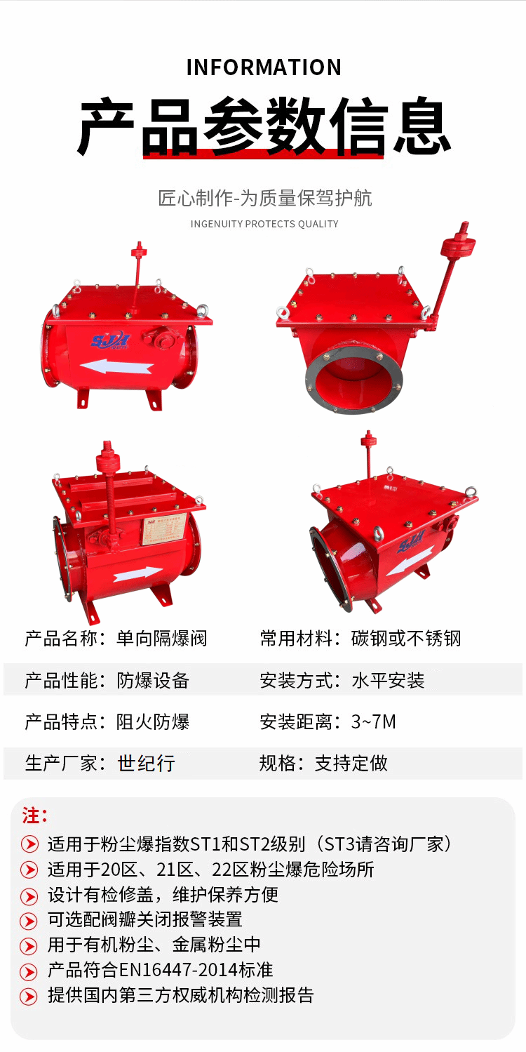 单向隔爆阀定制除尘设备管道用粉尘废气处理管道隔爆阻火
