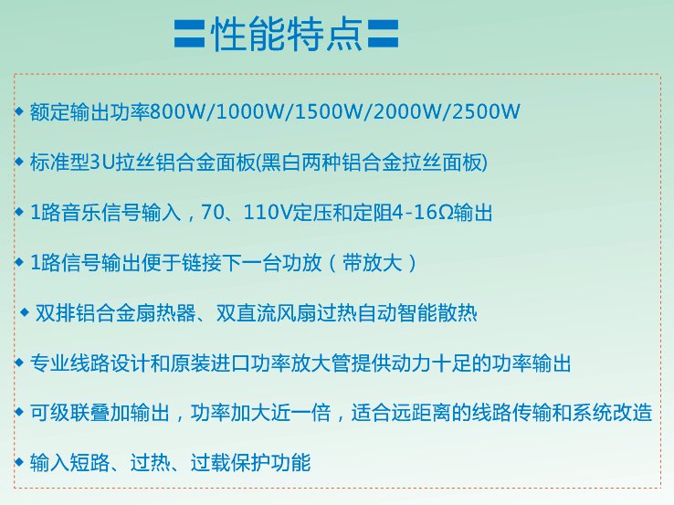输出4~16欧、70V、100V