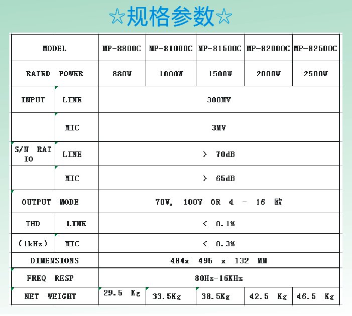YTAER音泰尔大功率级联式广播定压功放MP-82000C