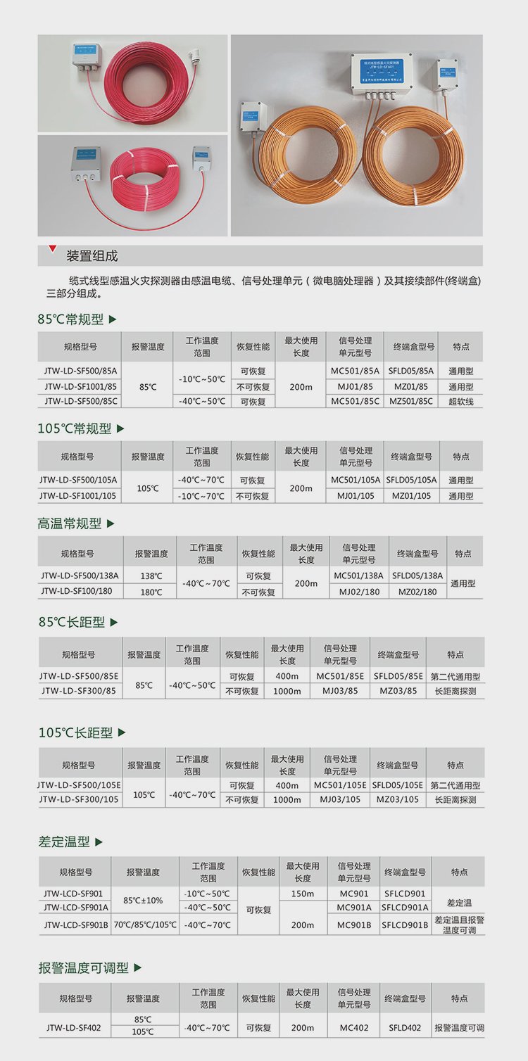 长距型感温电缆JTW-LD-SF500/105E 感温火灾探测器工厂直营 品牌 | 中阳消防 | ||