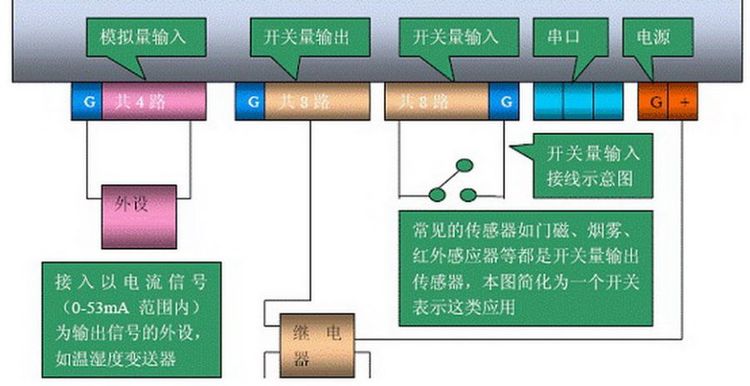 短信报警控制器内嵌实时操作系统,集远程I/O控制和数据传输以及报警功能为一体,具有8路开关量信号输入,8路开关信号输出(可驱动继电器)4路AD采样接口和1个用来远程数据通讯的RS-232接口,输入信号异常报警内容可由用户自定义。可监视测量以及控制安装在远程现场的传感器和设备。