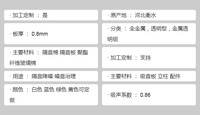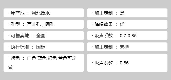 主要材料 | 吸音板 立柱 配件 | ||