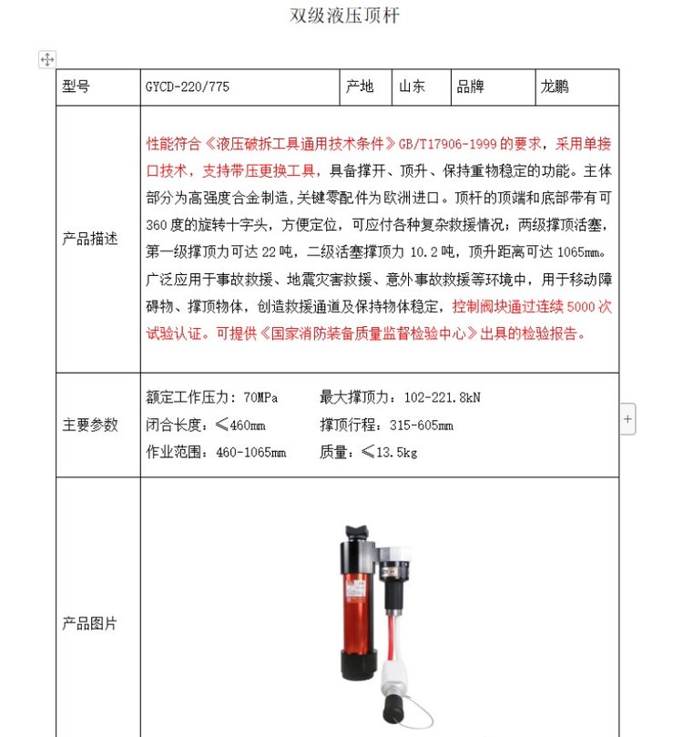 产品参数 | |||