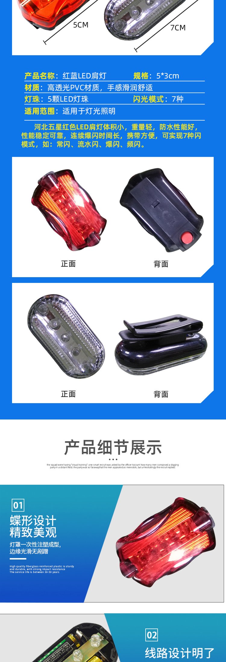 骑行夜跑红蓝爆闪警示灯保安值勤便携式肩夹LED闪光灯