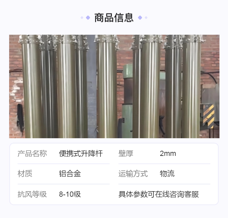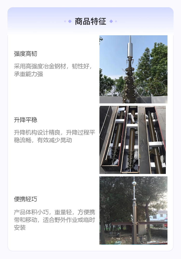 坚固耐用便携式升降杆伸缩杆支撑杆厂家可移动避雷针