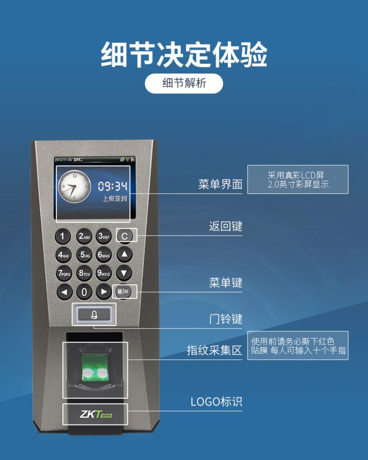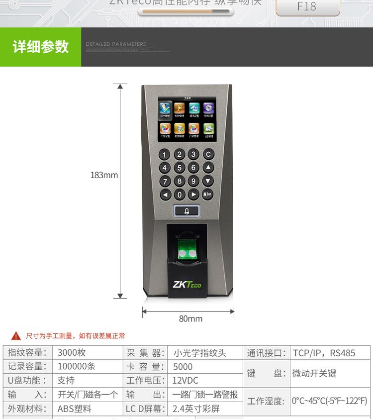 中控智慧熵基科技F18指纹密码ID/IC卡管理智能门禁考勤一体机套装 品牌 | 中控 | ||